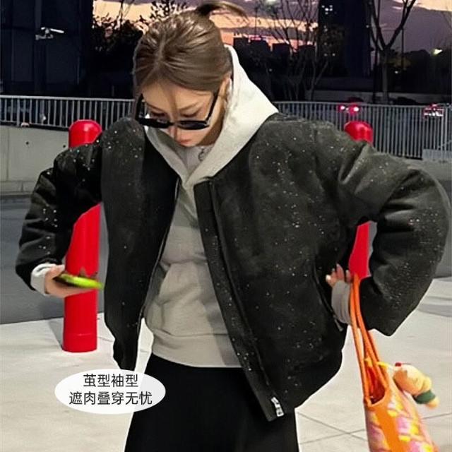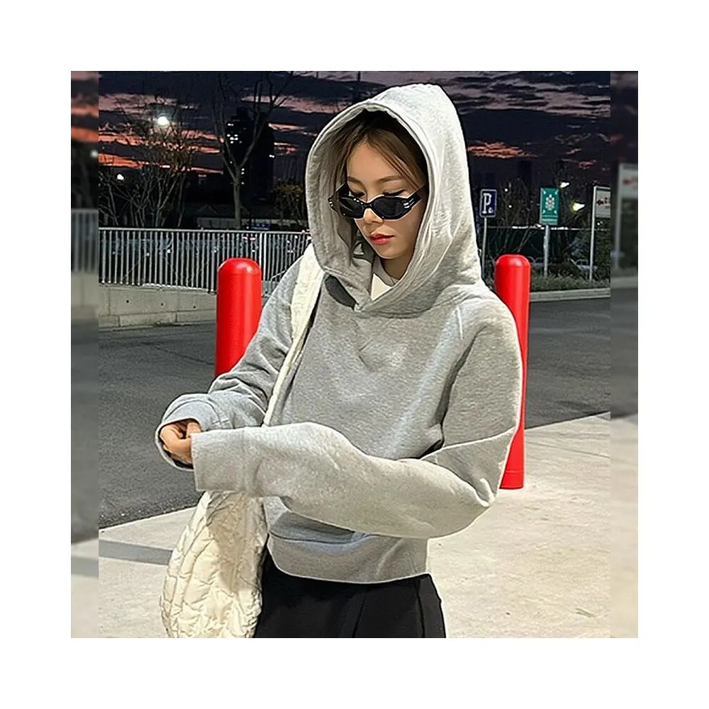 灰色短款連帽衛衣女秋冬2025新款小個子加絨加厚寬松帽衫內搭上衣