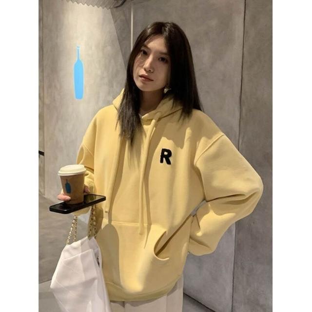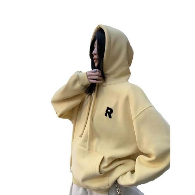 鵝黃色衛衣女薄款外套2025春秋新款刺繡連帽上衣手工帽繩套頭帽衫