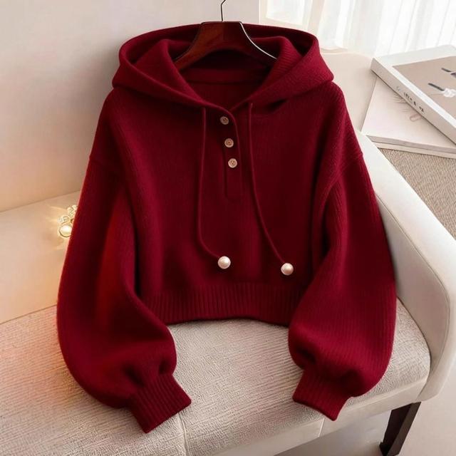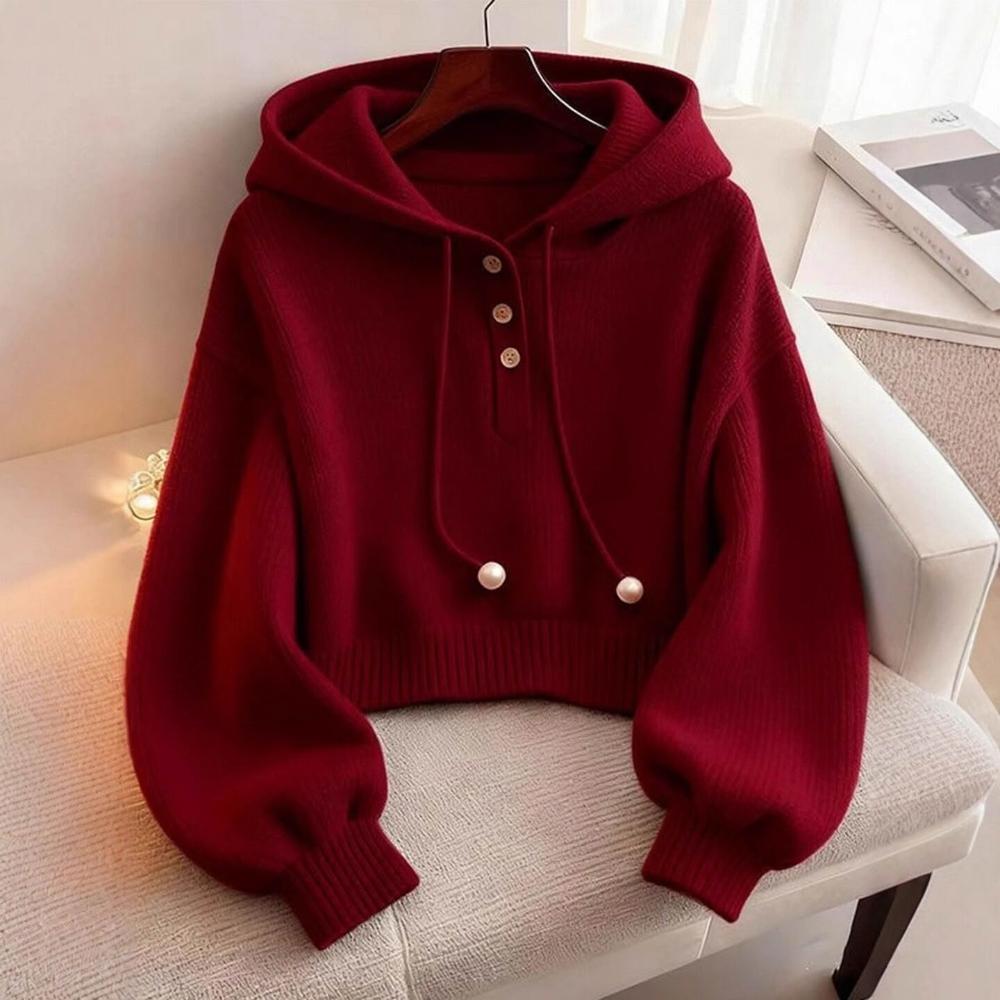紅色連帽衛衣女2025年秋冬新款短款打底衫針織毛衣超好看單穿上衣