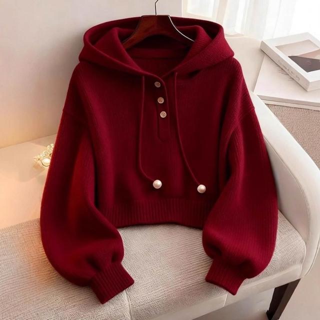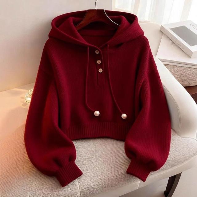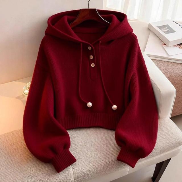 紅色連帽衛衣女2025年秋冬新款短款打底衫針織毛衣超好看單穿上衣
