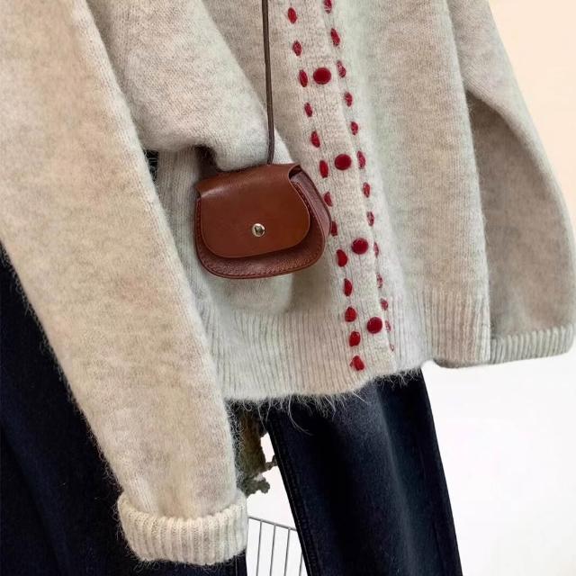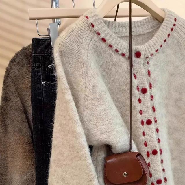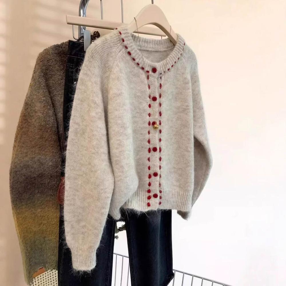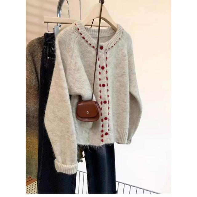 軟糯加厚圓領毛衣外套女秋季新款設計感外穿慵懶針織開衫上衣女