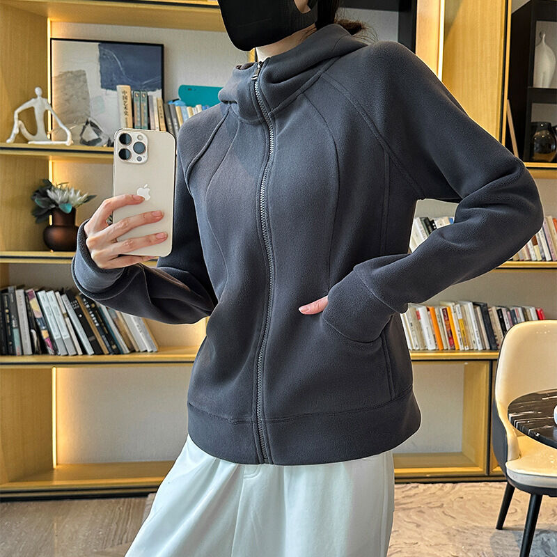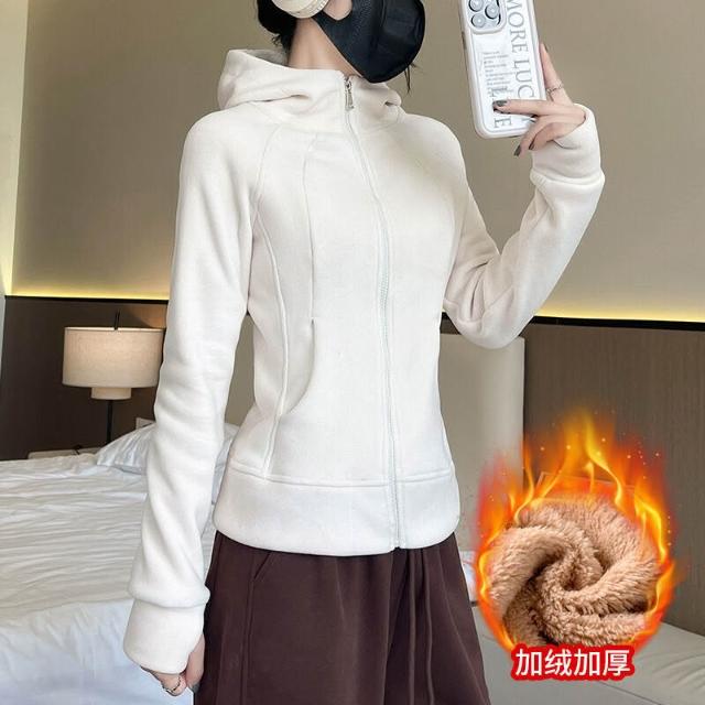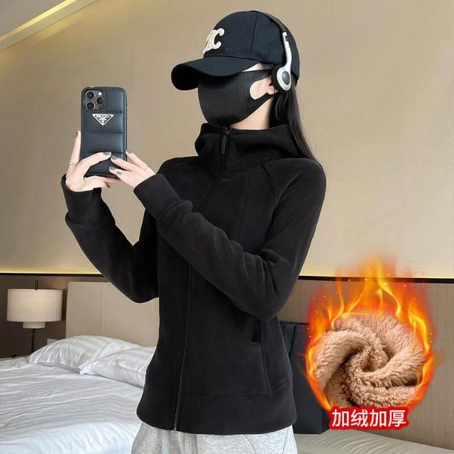 搖粒絨外套女2025秋冬季新款連帽衛衣加絨修身抓絨衣沖鋒衣內膽