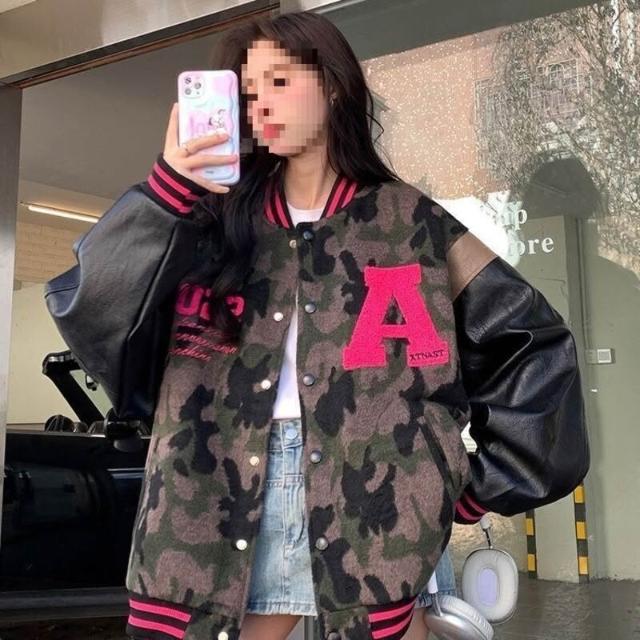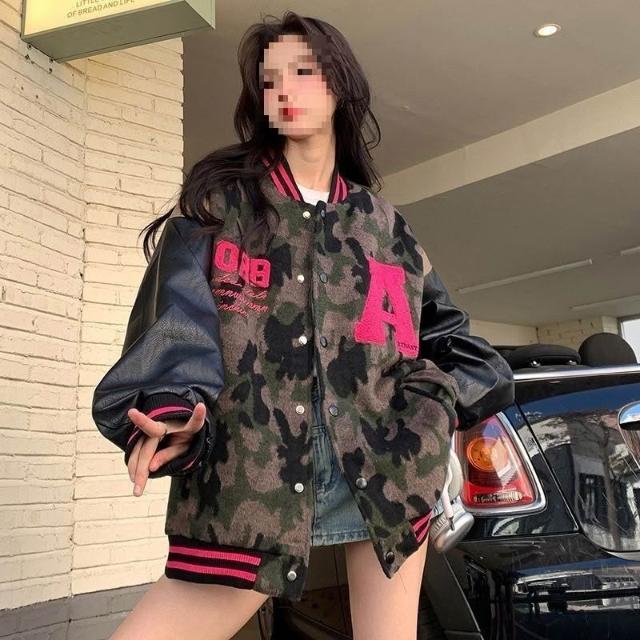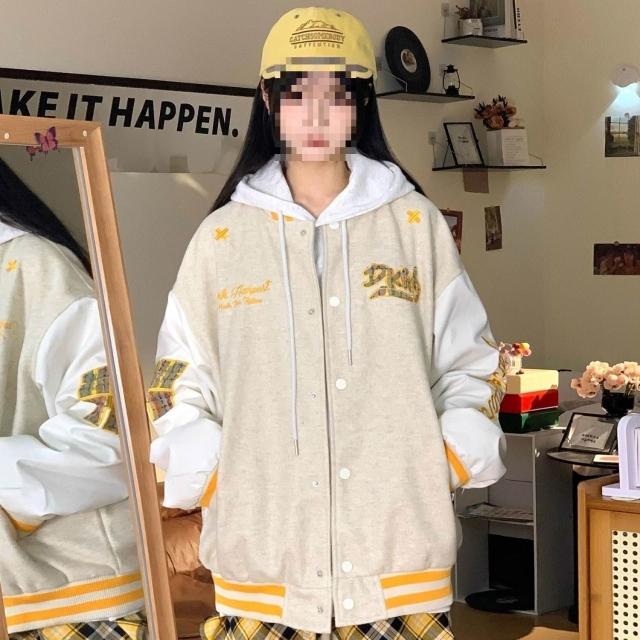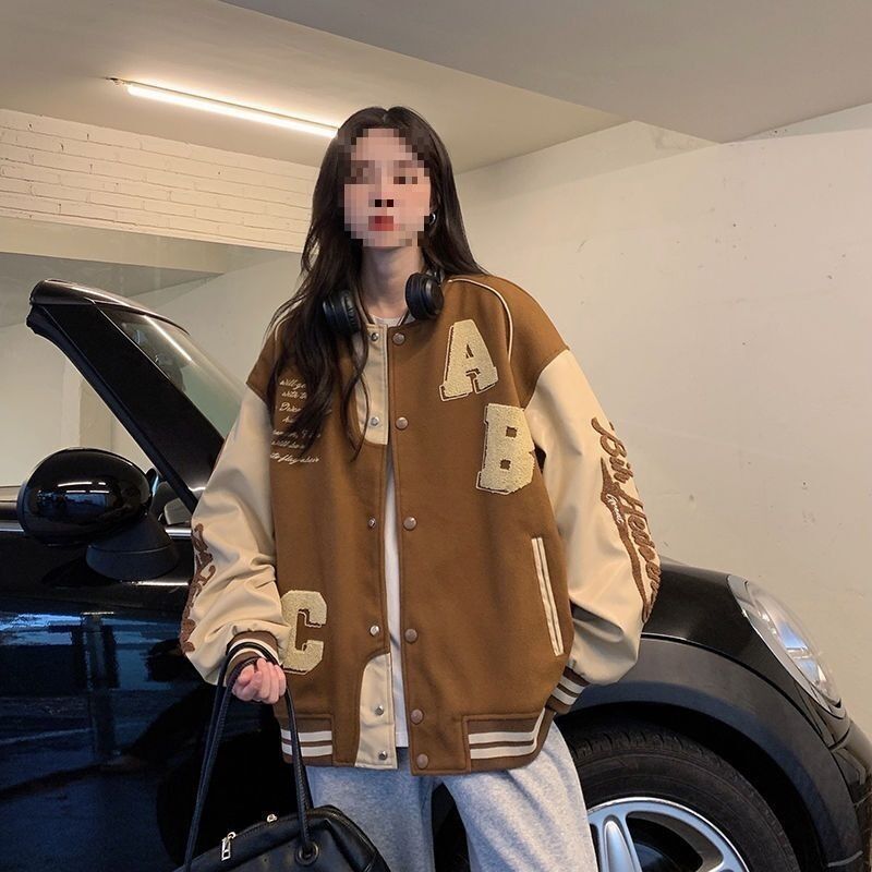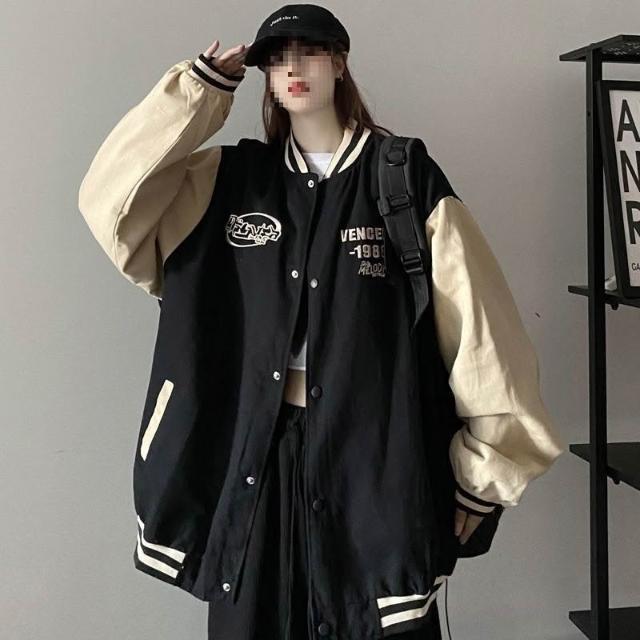 復古拼接刺繡字母棒球服春秋季新款寬松韓版學生百搭開衫潮外套女