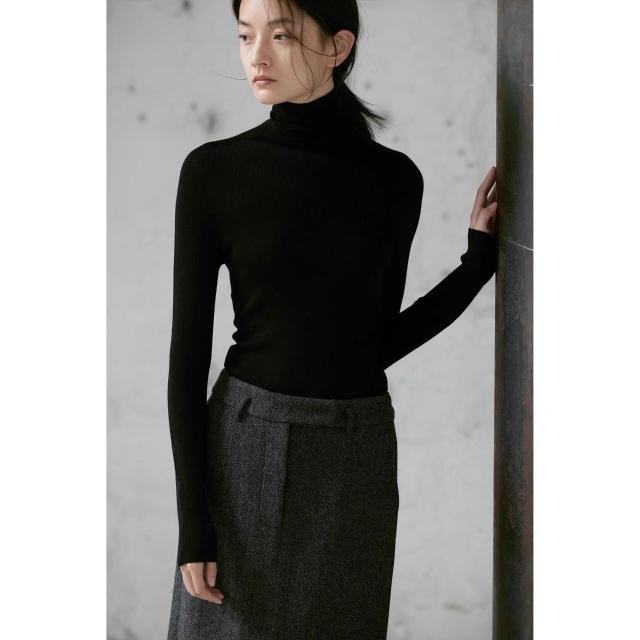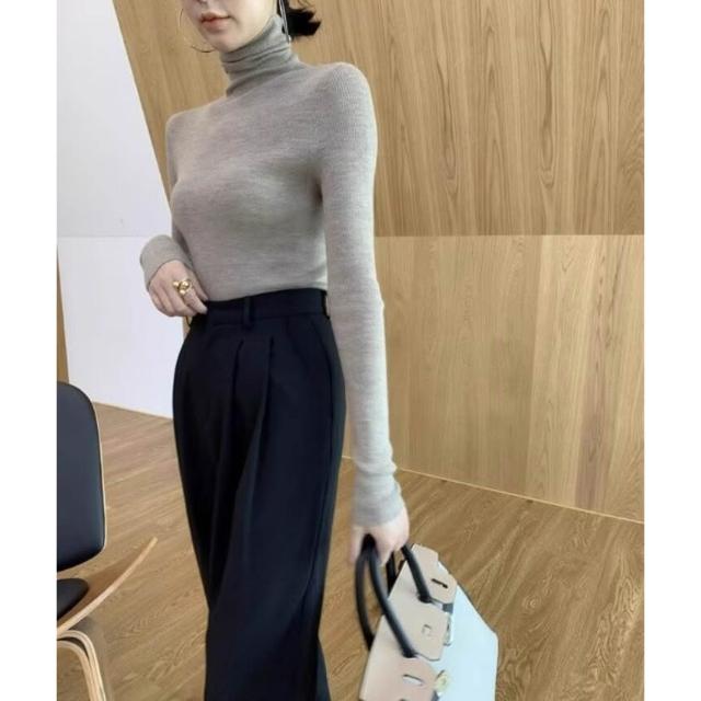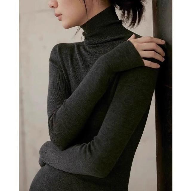 高領灰色羊毛打底衫女2025新款秋冬內搭緊身堆堆領針織衫高彈毛衣 679