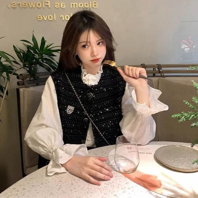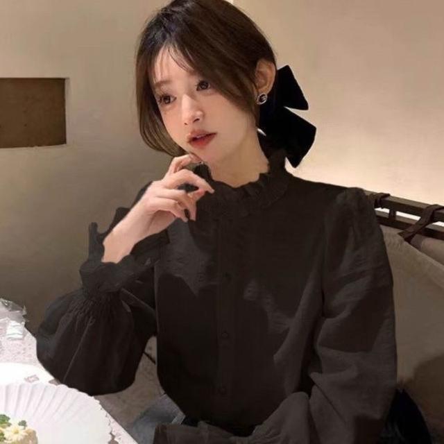 木耳花邊領白色襯衫女新款早秋法式復古上衣疊穿內搭打底襯衣 0cc
