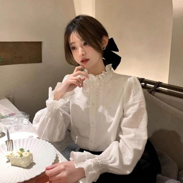 木耳花邊領白色襯衫女新款早秋法式復古上衣疊穿內搭打底襯衣 0cc