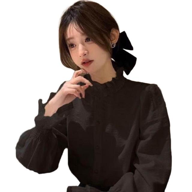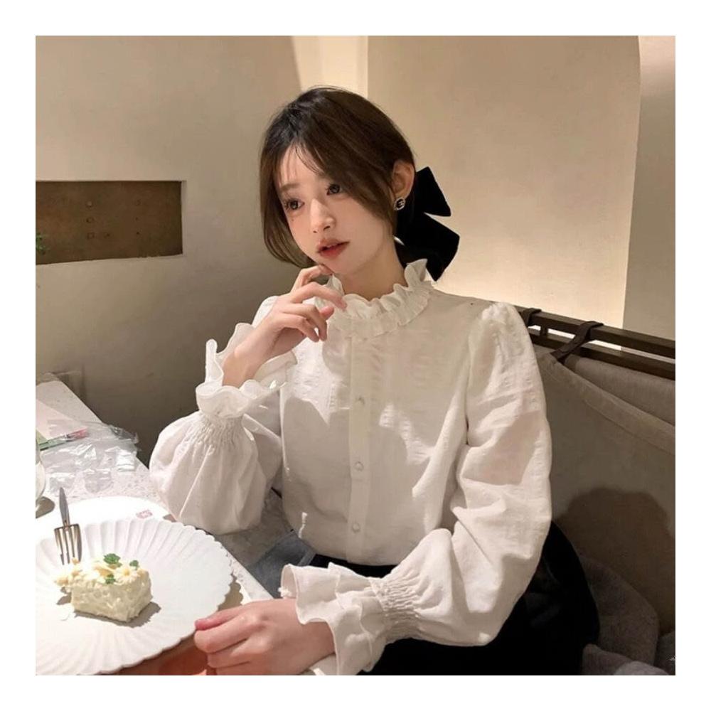 木耳花邊領白色襯衫女新款早秋法式復古上衣疊穿內搭打底襯衣 0cc