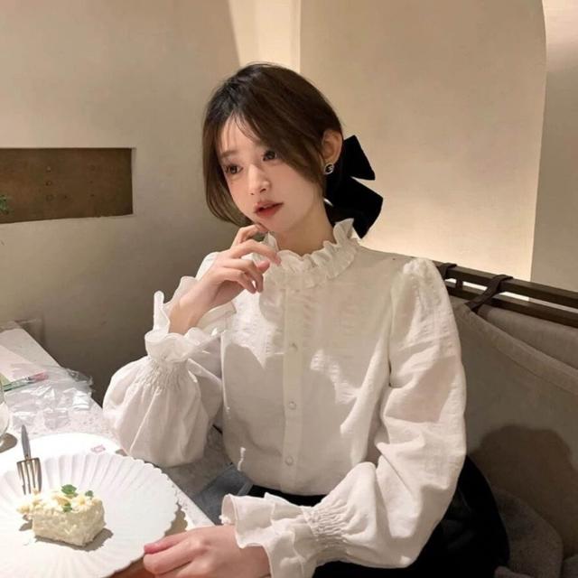 木耳花邊領白色襯衫女新款早秋法式復古上衣疊穿內搭打底襯衣 0cc