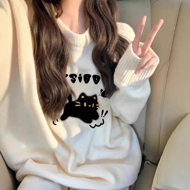 初高中生奶fufu寬松慵懶風毛衣少女秋冬小眾設計感加厚內搭上衣 469