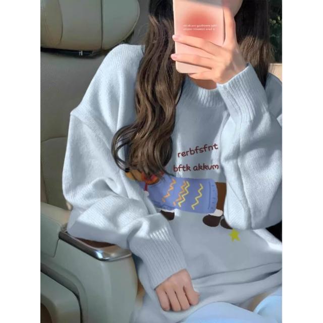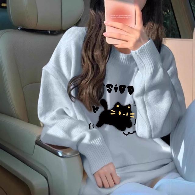 初高中生奶fufu寬松慵懶風毛衣少女秋冬小眾設計感加厚內搭上衣 469