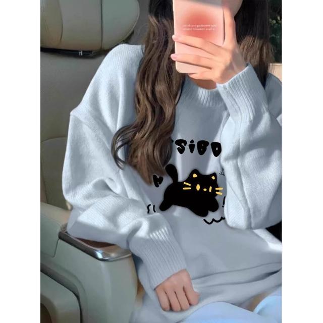 初高中生奶fufu寬松慵懶風毛衣少女秋冬小眾設計感加厚內搭上衣 469