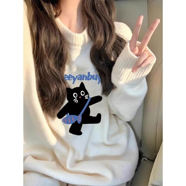 初高中生奶fufu寬松慵懶風毛衣少女秋冬小眾設計感加厚內搭上衣 469