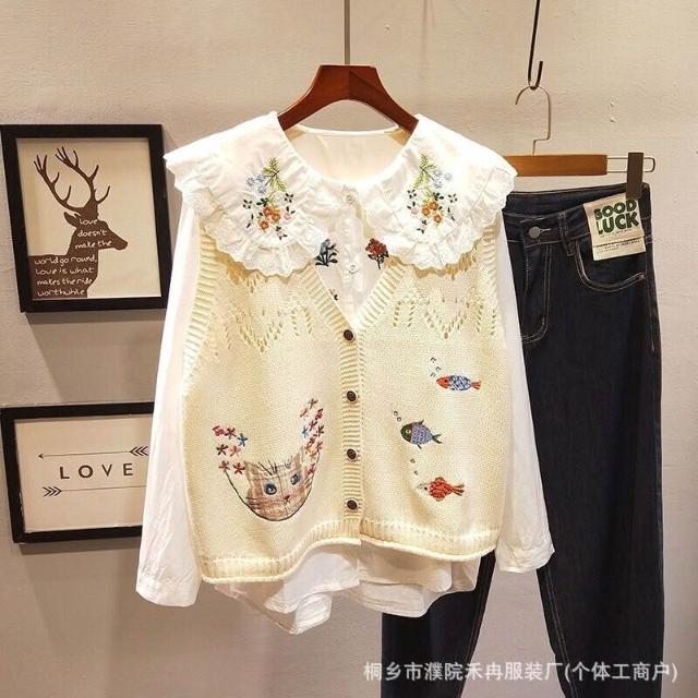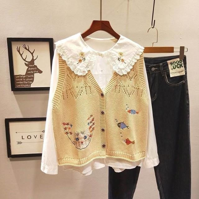 春裝寬松百搭減齡毛衣坎肩小個子背心開衫甜美可愛森系針織馬甲女 a33