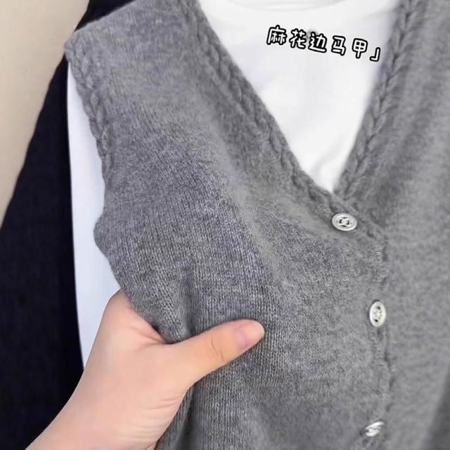 灰色麻花馬甲針織背心女毛衣開衫2025秋季新款寬松V領坎肩上衣潮 718