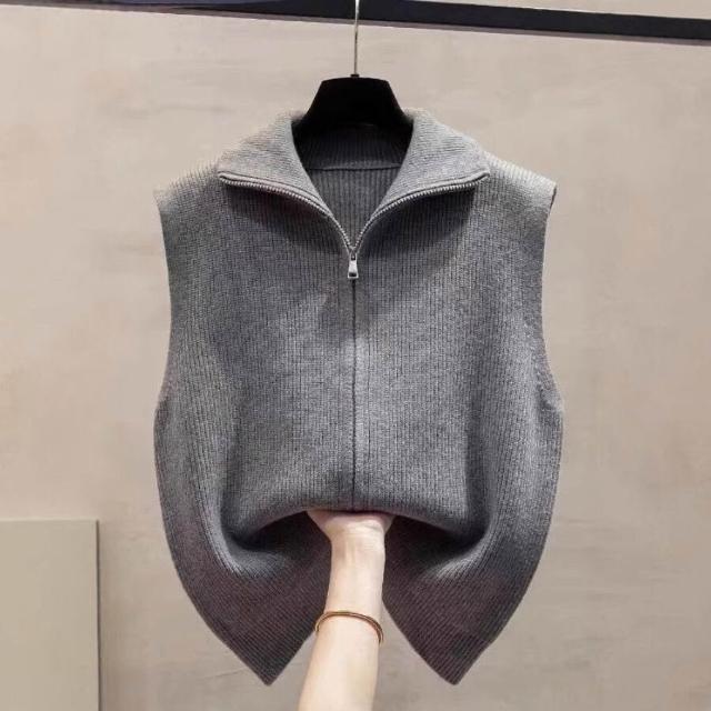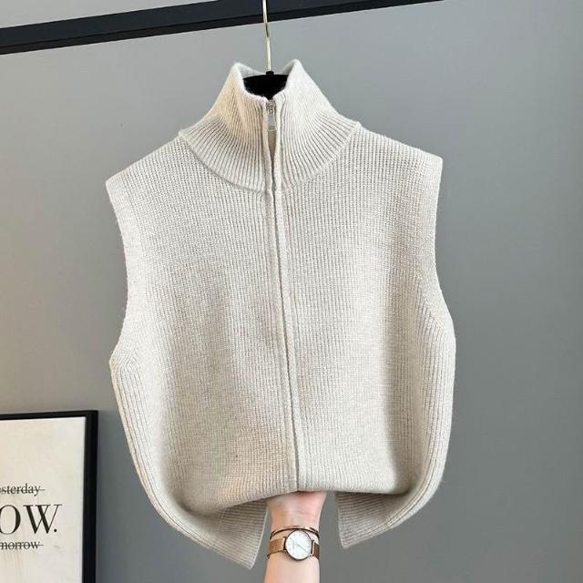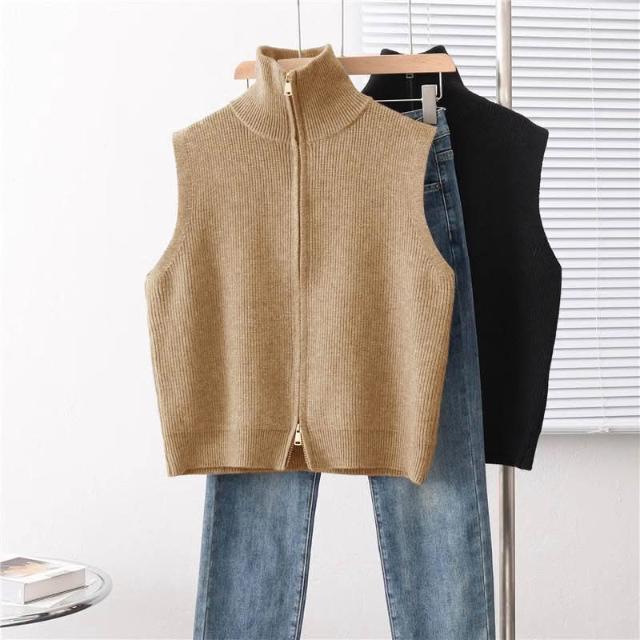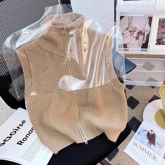 高領拉鏈針織開衫馬甲背心女2024春秋冬新款寬松疊穿馬夾毛衣坎肩 c52