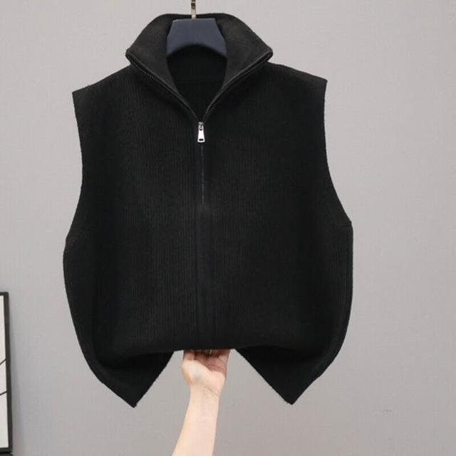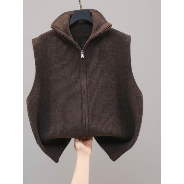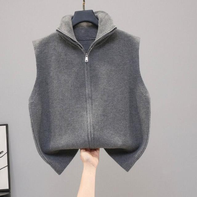 拉鏈馬甲女針織衫2025秋裝新款純色寬松毛衣開衫背心外搭女士馬夾 c23