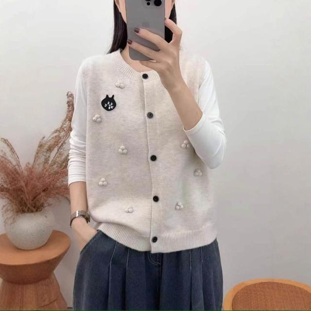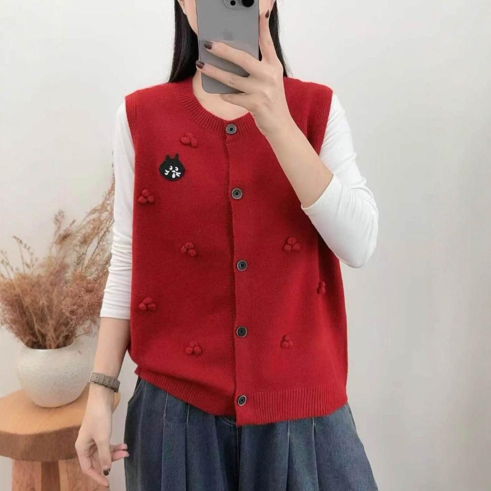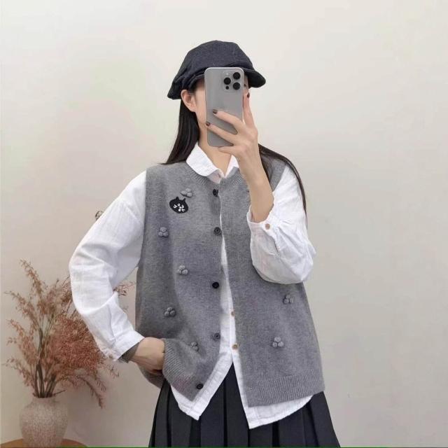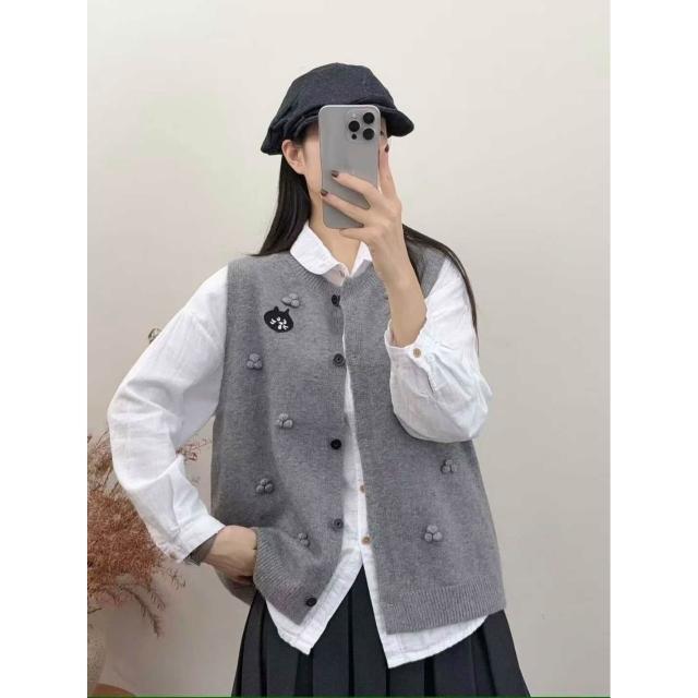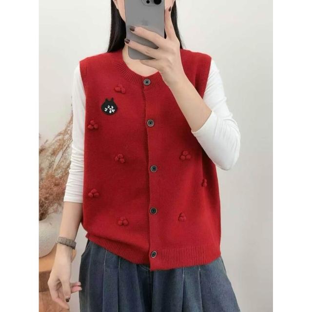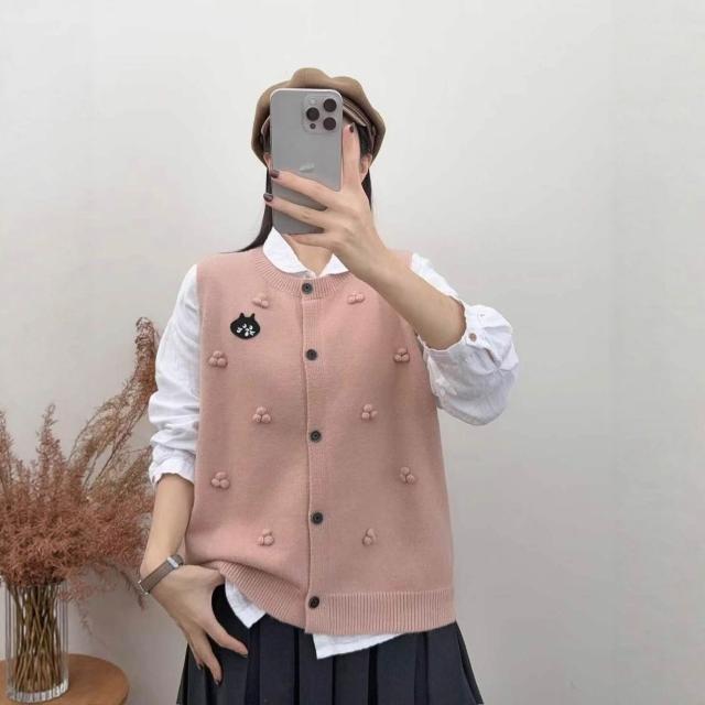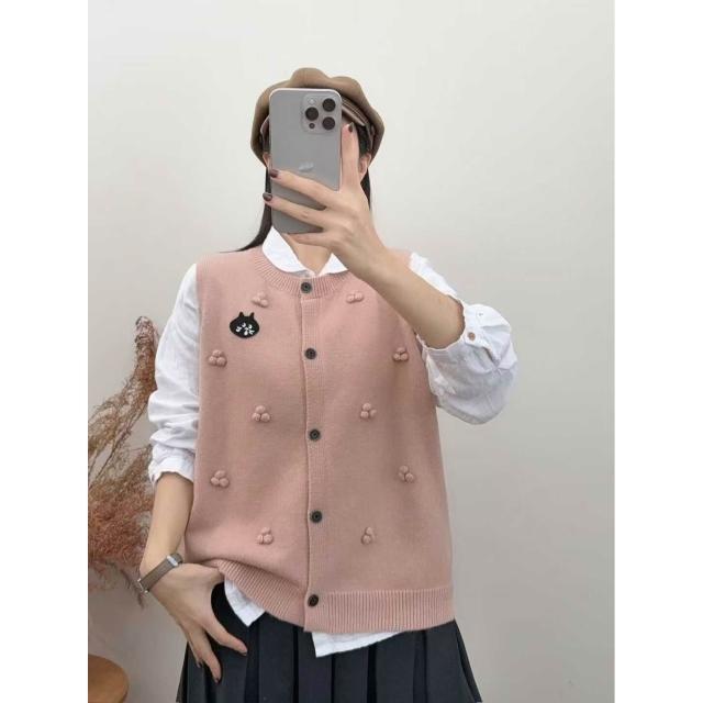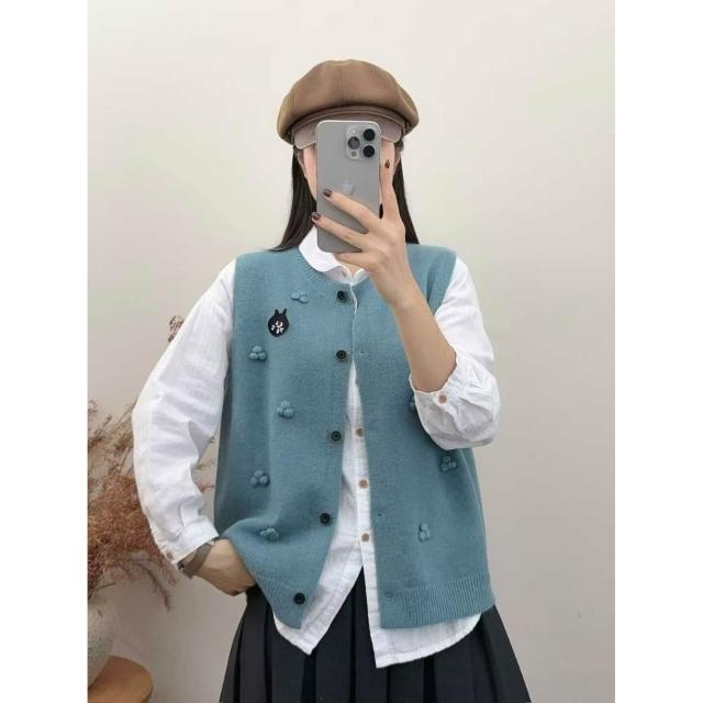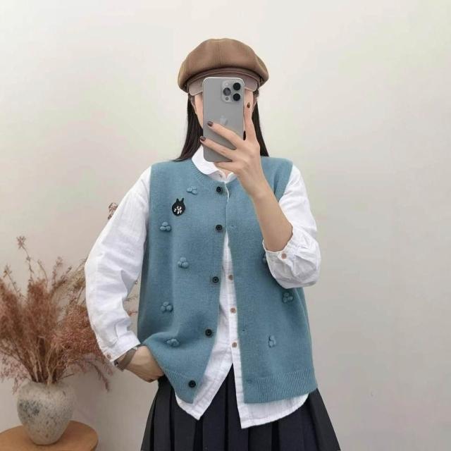 貓頭款拼色針織馬甲女圓領百搭疊穿毛衣坎肩背心軟糯無袖上衣 4b8