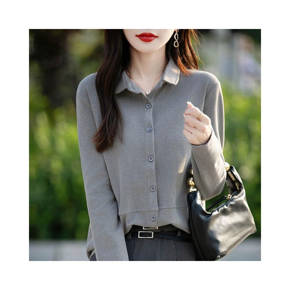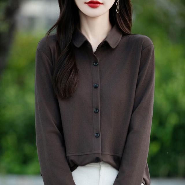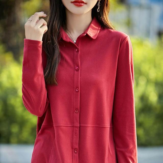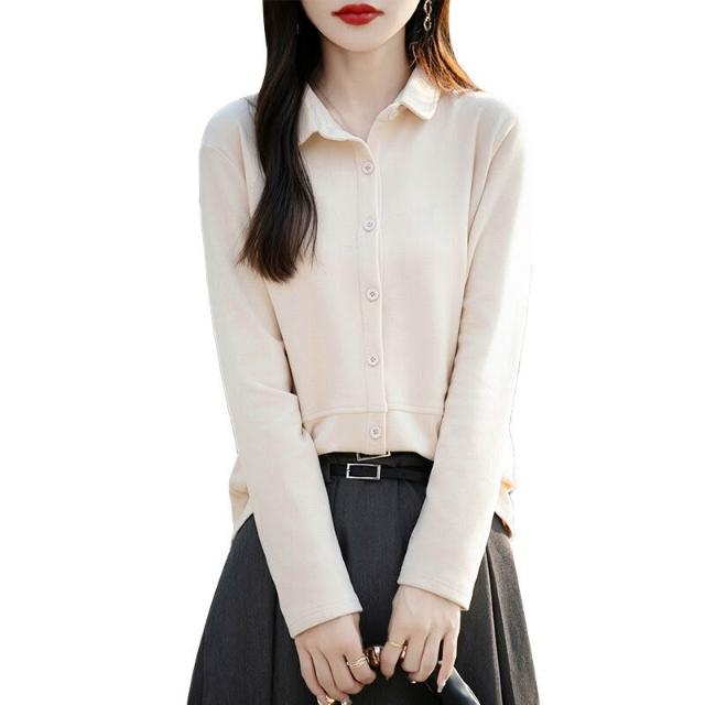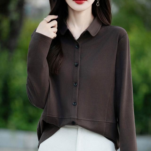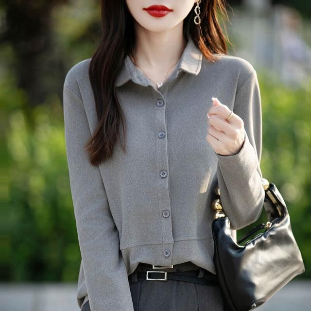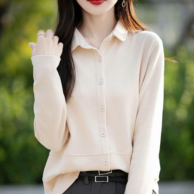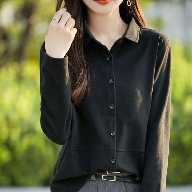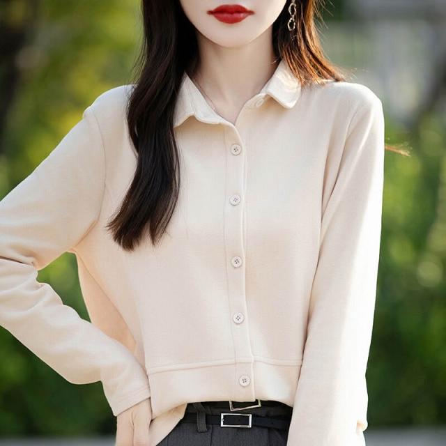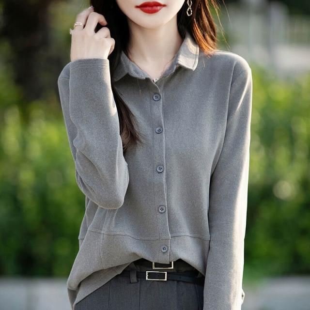 秋冬新款女士雙面德絨襯衫POLO領磨毛長袖疊穿女襯衣寬松上衣 66f