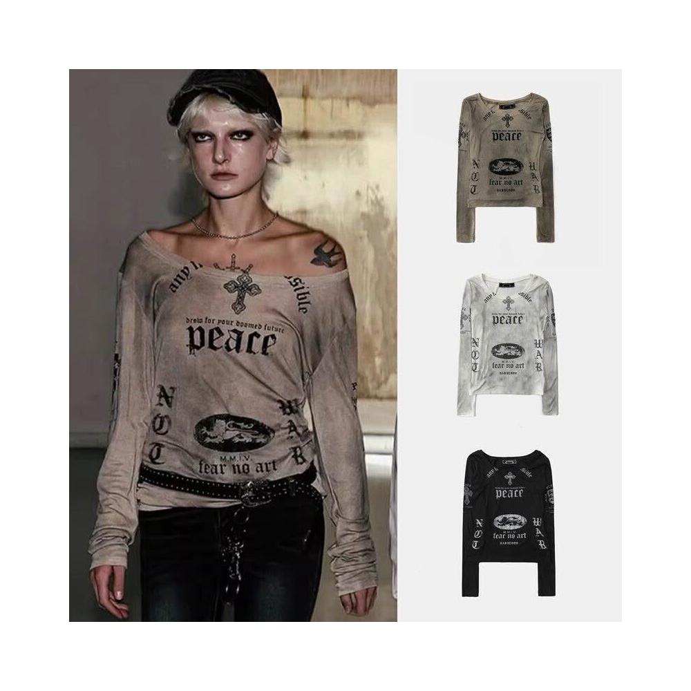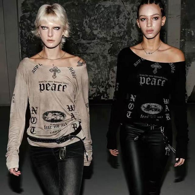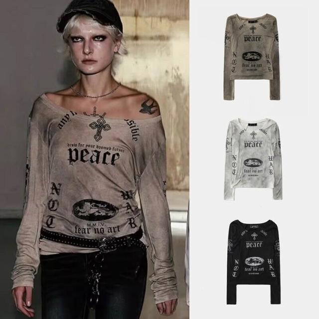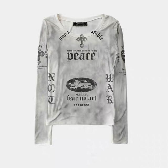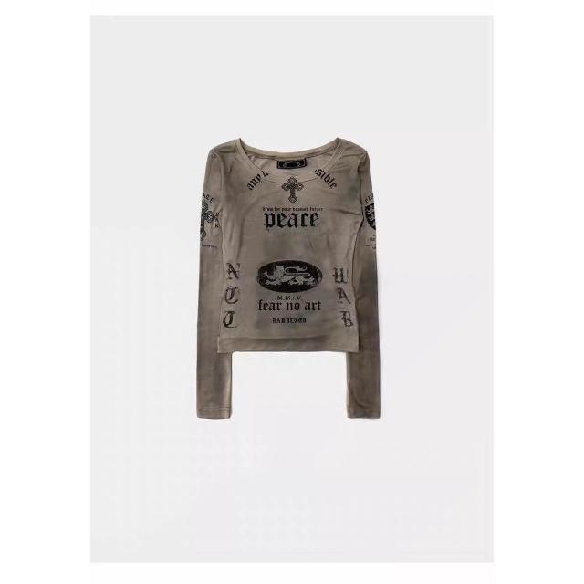 韓國badblood bcac系列美式做舊修身顯瘦打底衫復古印花長袖T恤女 463