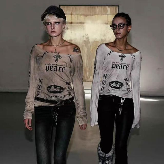 韓國badblood bcac系列美式做舊修身顯瘦打底衫復古印花長袖T恤女 463