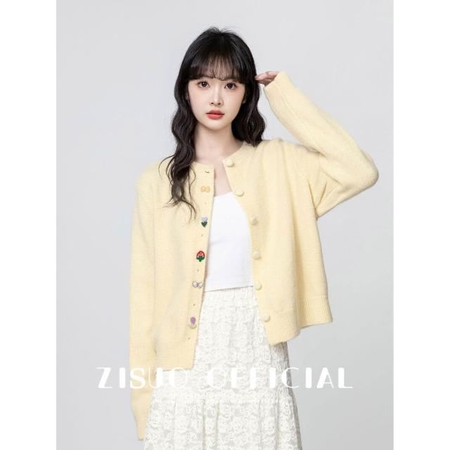 黃色針織開衫女春秋2025新款寬松刺繡設計感薄款毛衣外套圓領上衣 a87
