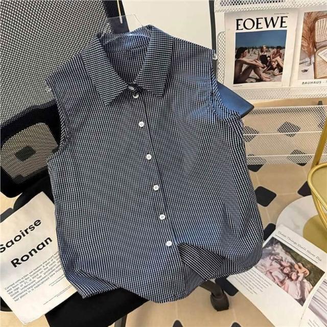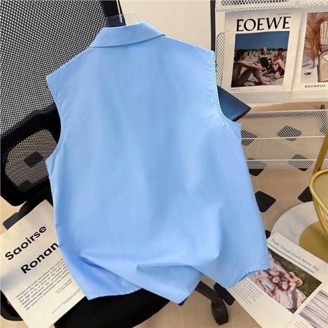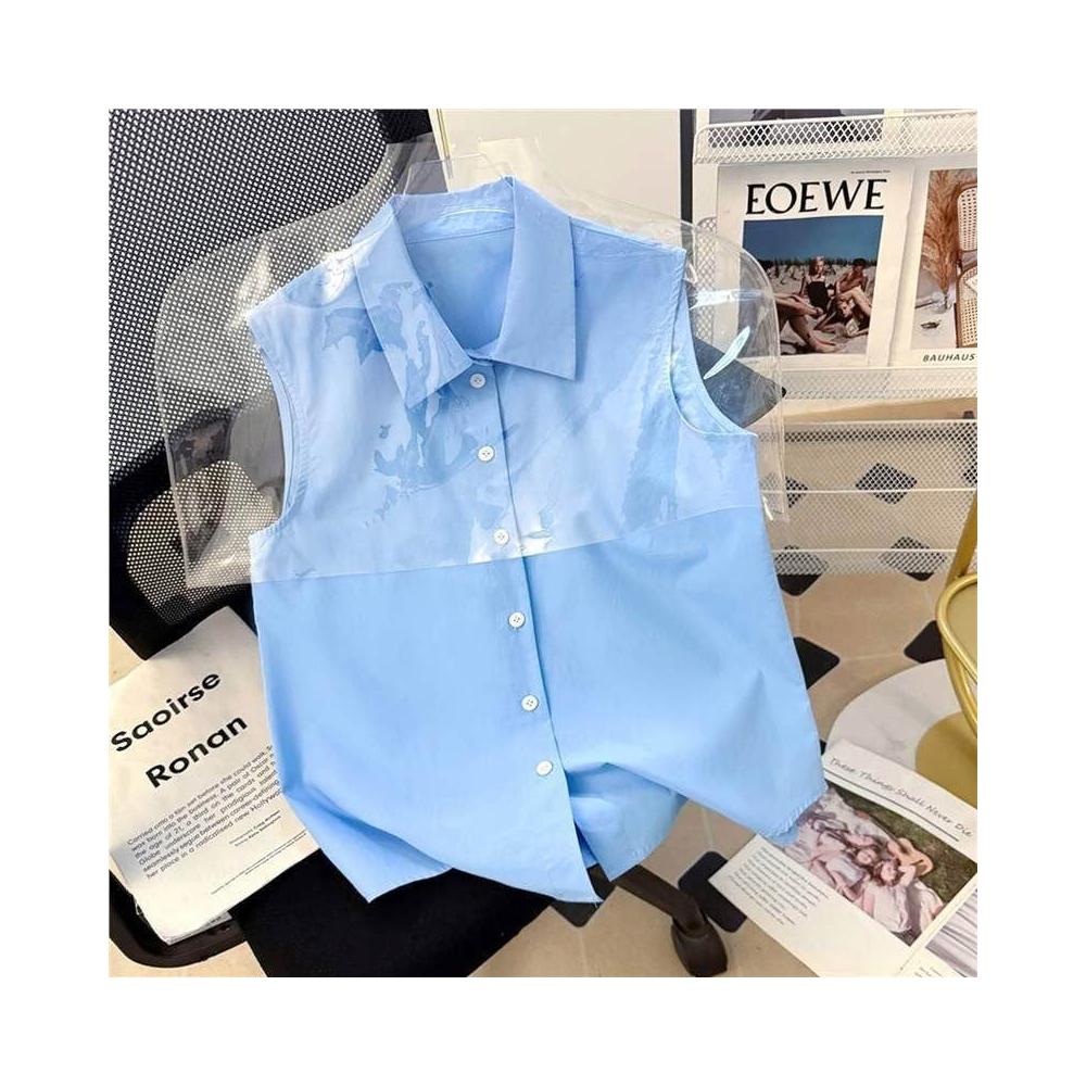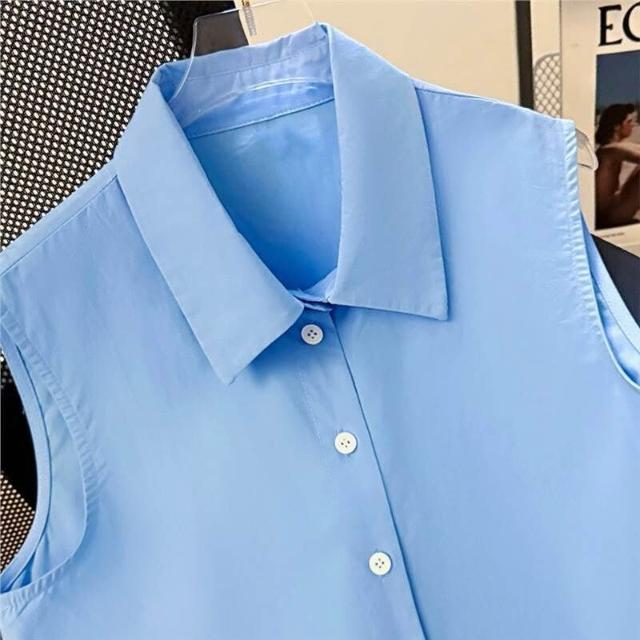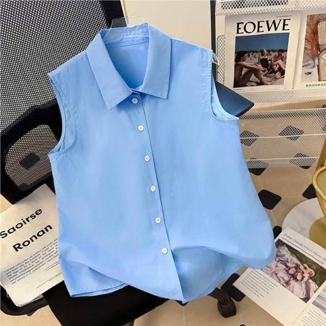 四季疊搭背心無袖襯衫女秋內搭打底衫襯衣POLO翻領單排扣上衣 fc2