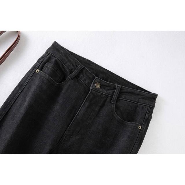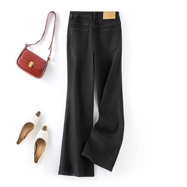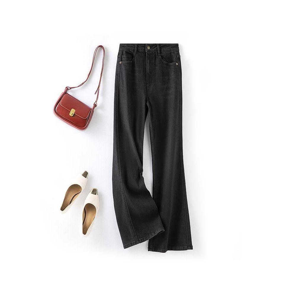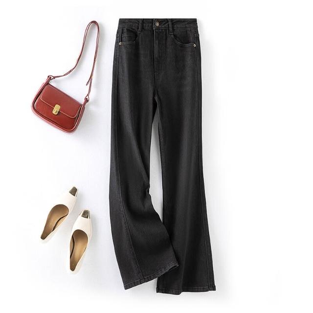 新款微喇牛仔褲女秋季輕暖高腰直筒女裝褲子薄絨寬松顯瘦微喇叭褲 240