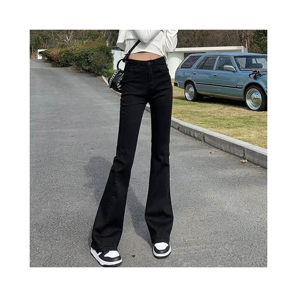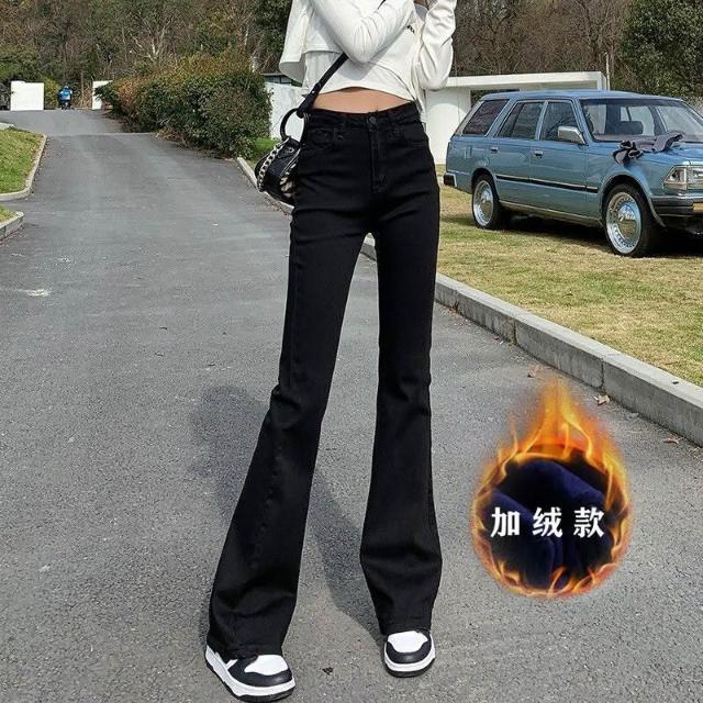 黑色微喇牛仔褲女2025新款春季高腰顯瘦加絨彈力喇叭褲拖地馬蹄褲 4d4