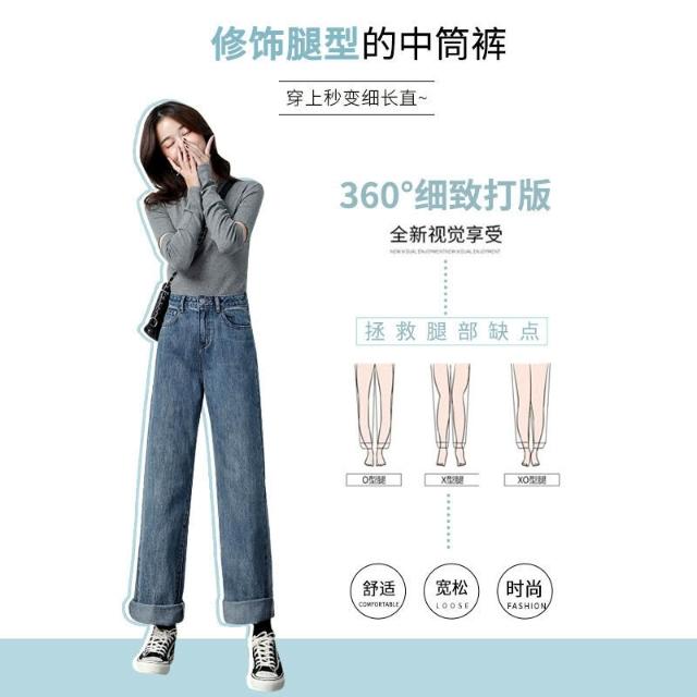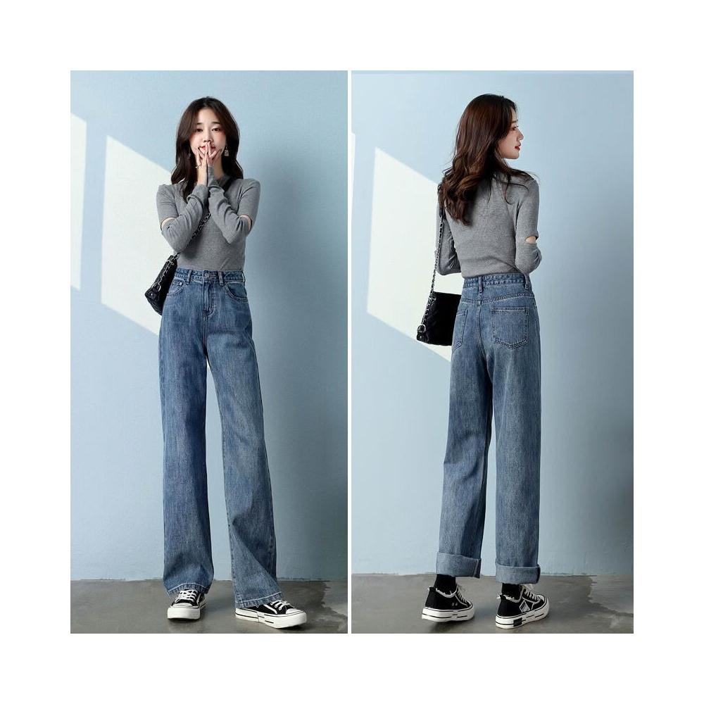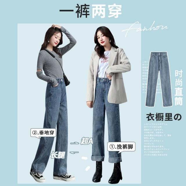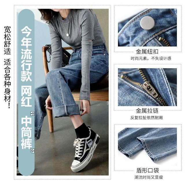 樂購小鋪 高腰窄版牛仔褲女寬松垂感闊腿褲春夏新款潮顯瘦泫雅小個子直筒褲 15