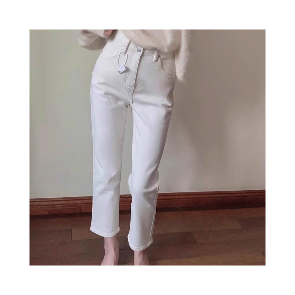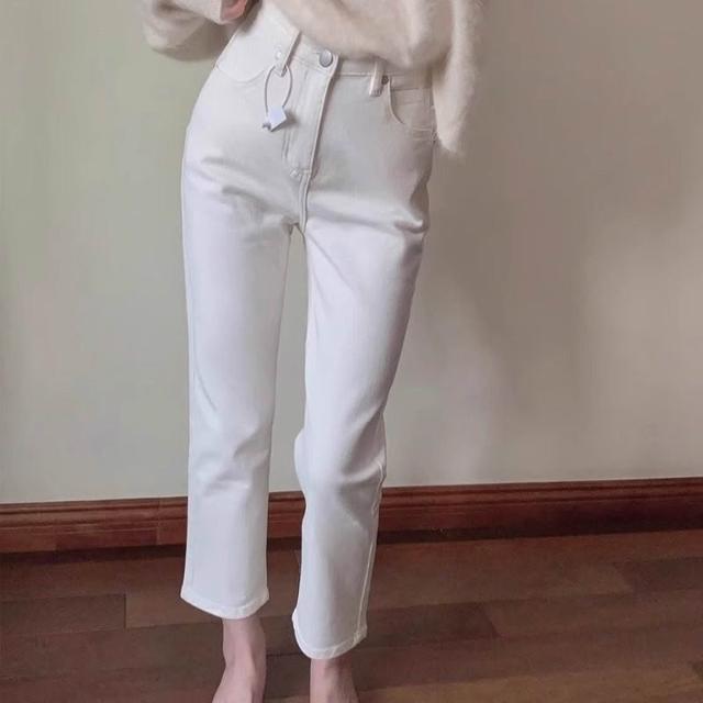 樂購小鋪 白色夏季薄款直筒牛仔褲女2025年新款顯瘦高腰彈力小個子夏日柔軟 9