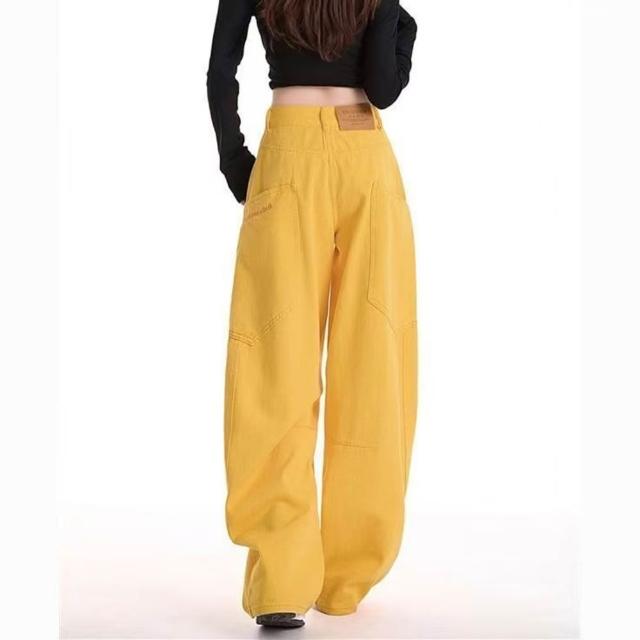樂購小鋪 黃色彎刀工裝牛仔褲女春秋季2025新款設計感梧桐哈倫蘿蔔鐮刀褲子 1 9