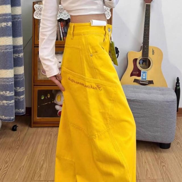 樂購小鋪 黃色彎刀工裝牛仔褲女春秋季2025新款設計感梧桐哈倫蘿蔔鐮刀褲子 1 9