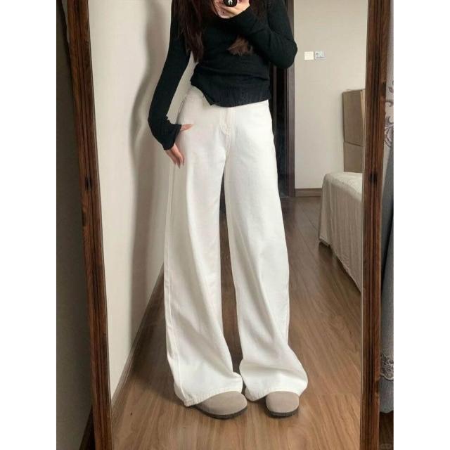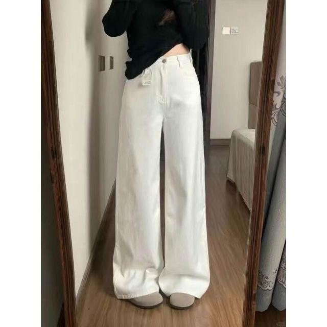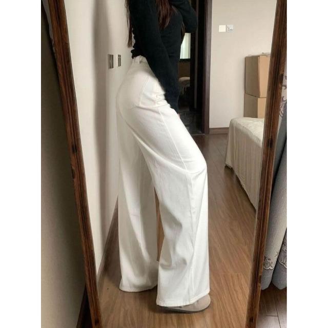 樂購小鋪 白色牛仔褲女2025年新款高腰顯瘦寬松韓版褲子直筒褲窄版闊腿長褲 8