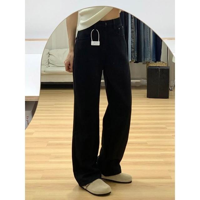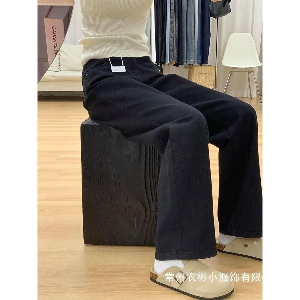 樂購小鋪 黑色闊腿牛仔褲女2025春秋新款小個子寬松顯瘦拖地窄版直筒褲批發 828