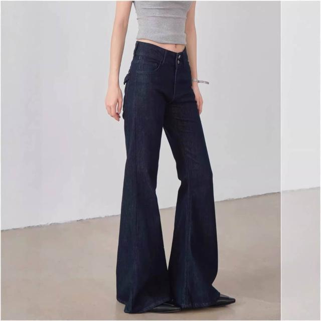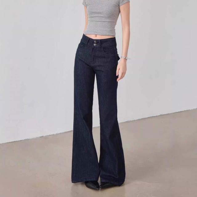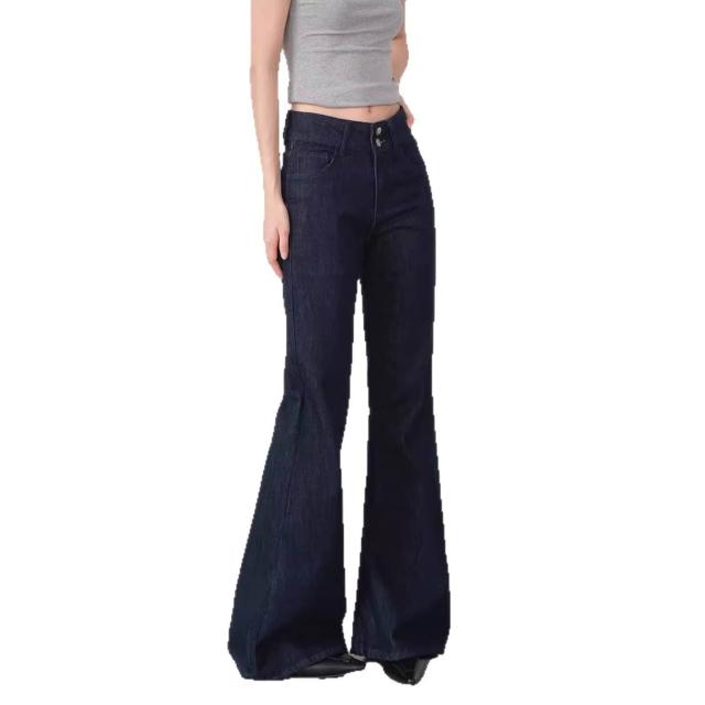 樂購小鋪 梵思羽復古高腰微喇叭牛仔褲女2025夏季薄款顯瘦修身垂感闊腿 98