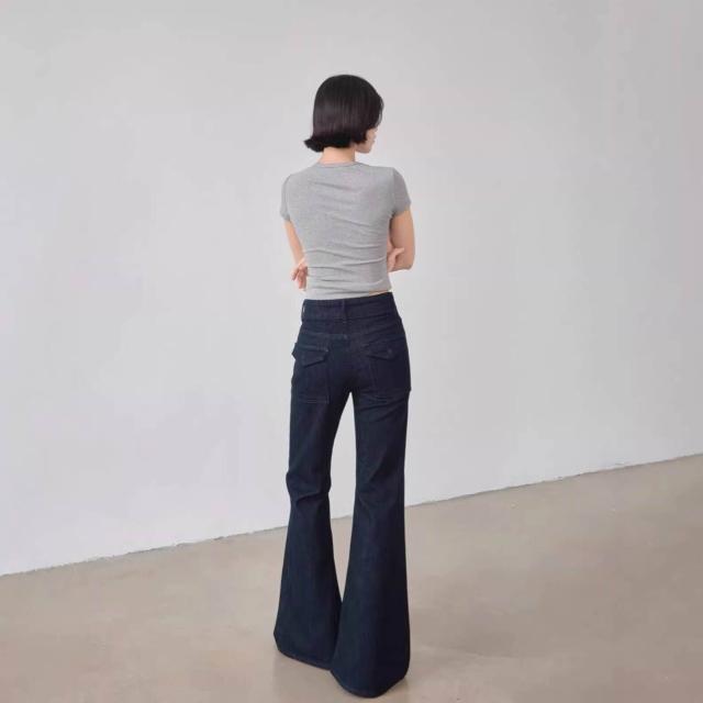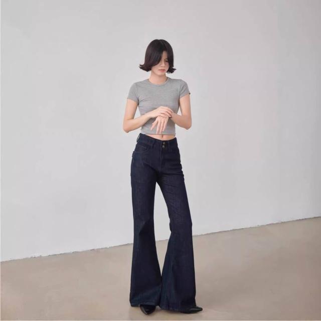 樂購小鋪 梵思羽復古高腰微喇叭牛仔褲女2025夏季薄款顯瘦修身垂感闊腿 98