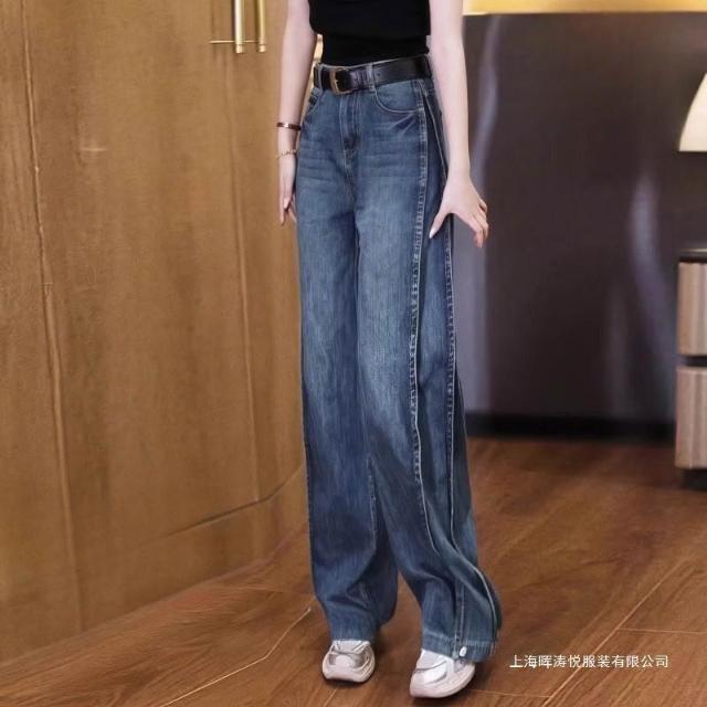 樂購小鋪 復古牛仔褲窄版彎刀闊腿褲女年新款春夏季高腰寬松彎刀褲 7