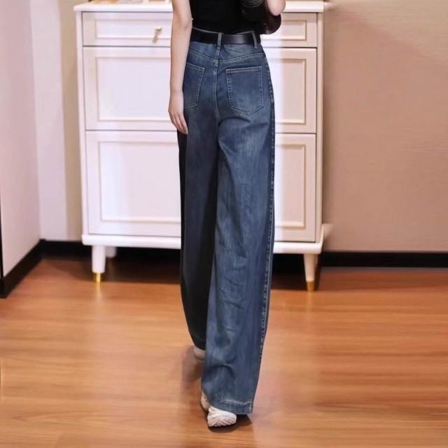 樂購小鋪 復古牛仔褲窄版彎刀闊腿褲女年新款春夏季高腰寬松彎刀褲 7