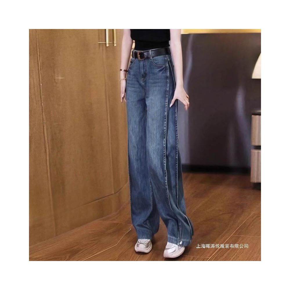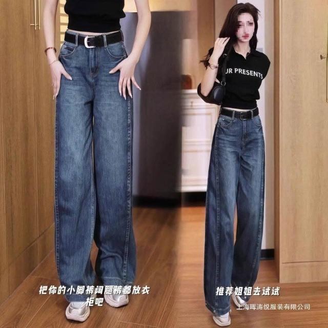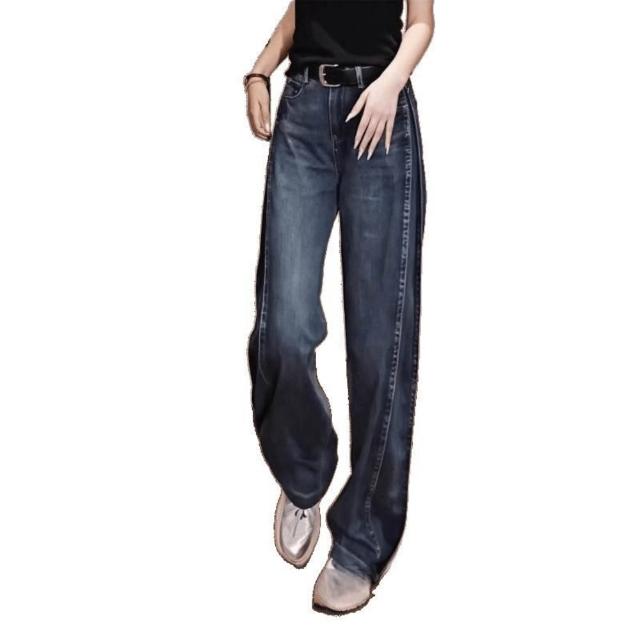 樂購小鋪 復古牛仔褲窄版彎刀闊腿褲女年新款春夏季高腰寬松彎刀褲 7