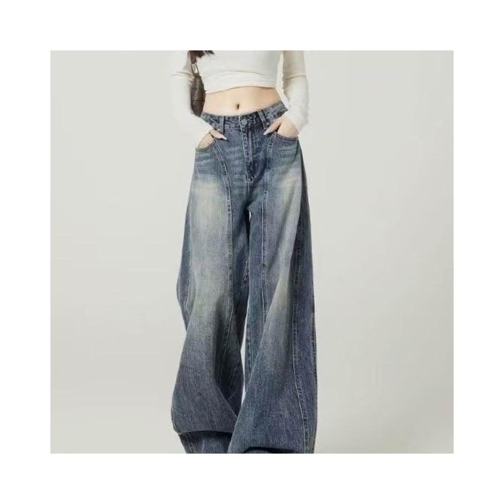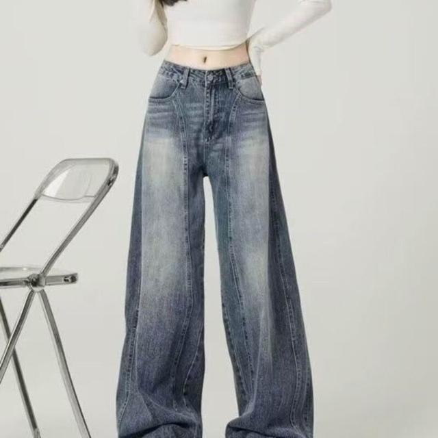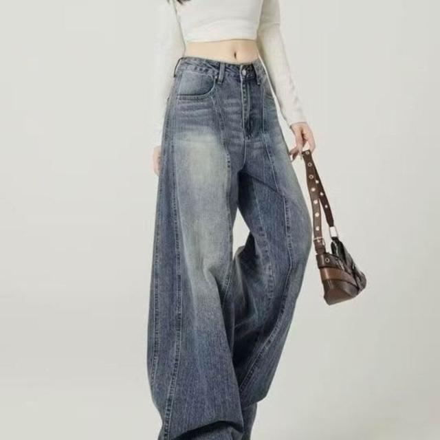 樂購小鋪 美式復古高街寬松闊腿牛仔褲女2025夏新款設計感高腰垂感彎刀褲子 790