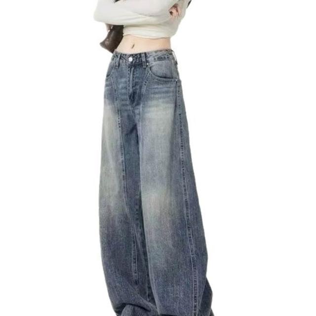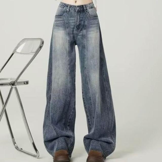 樂購小鋪 美式復古高街寬松闊腿牛仔褲女2025夏新款設計感高腰垂感彎刀褲子 790