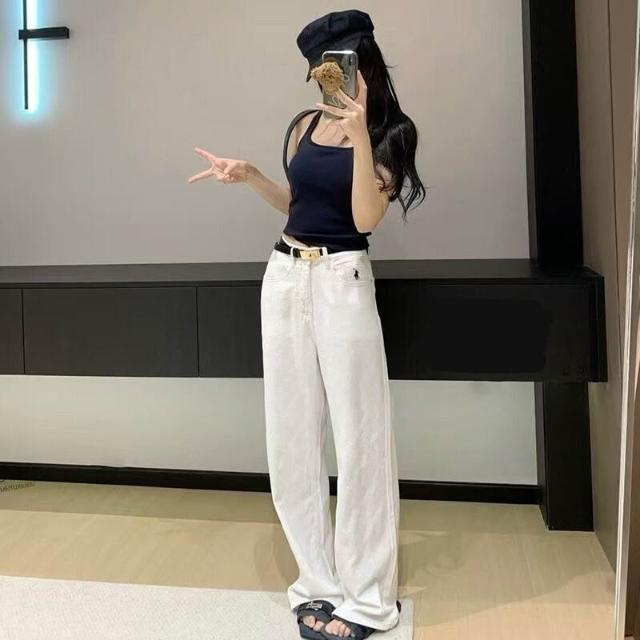 樂購小鋪 歐洲站白色牛仔褲女復古提花小馬刺繡高腰顯瘦直筒拖地闊腿褲長褲 6