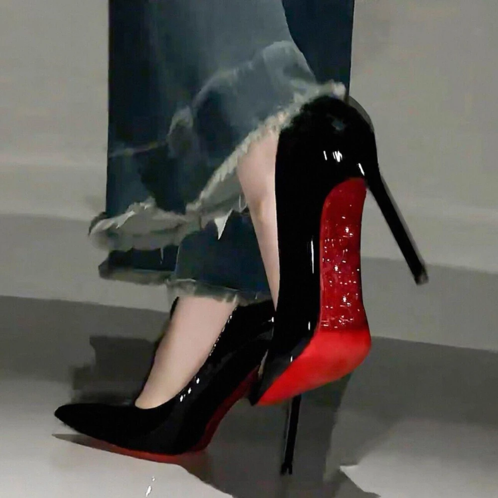 樂購小鋪 水鉆紅底高跟鞋女細跟春秋2025新款絕美性感婚鞋黑色漆皮尖頭單鞋 5