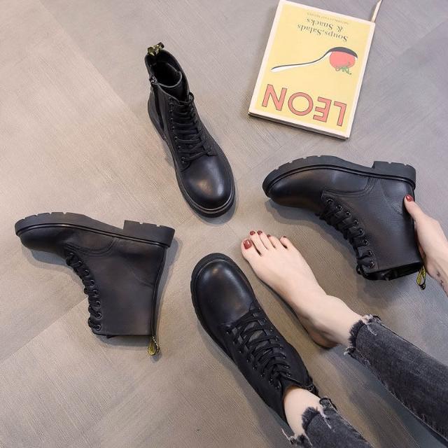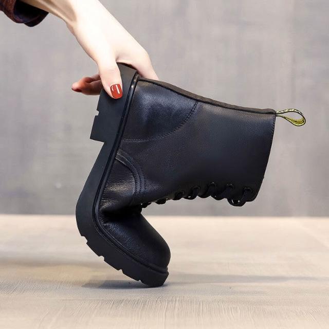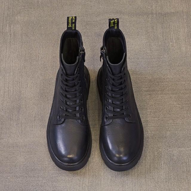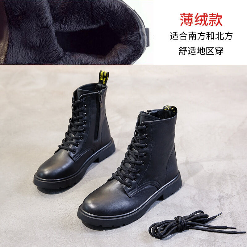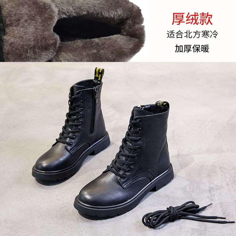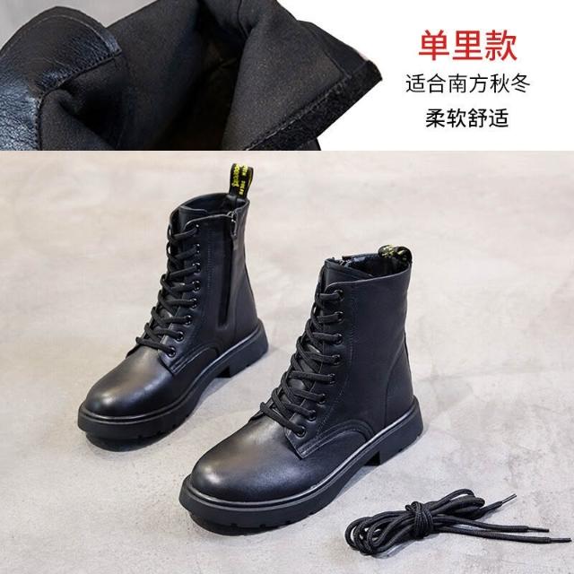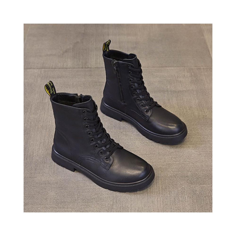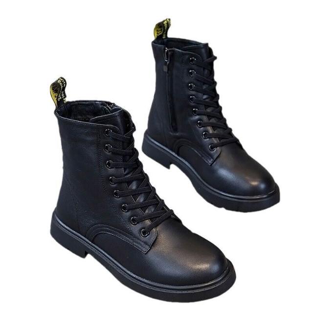 樂購小鋪 真皮馬丁靴女英倫風靴子2024新款冬季加絨加厚百搭平底大碼短靴41