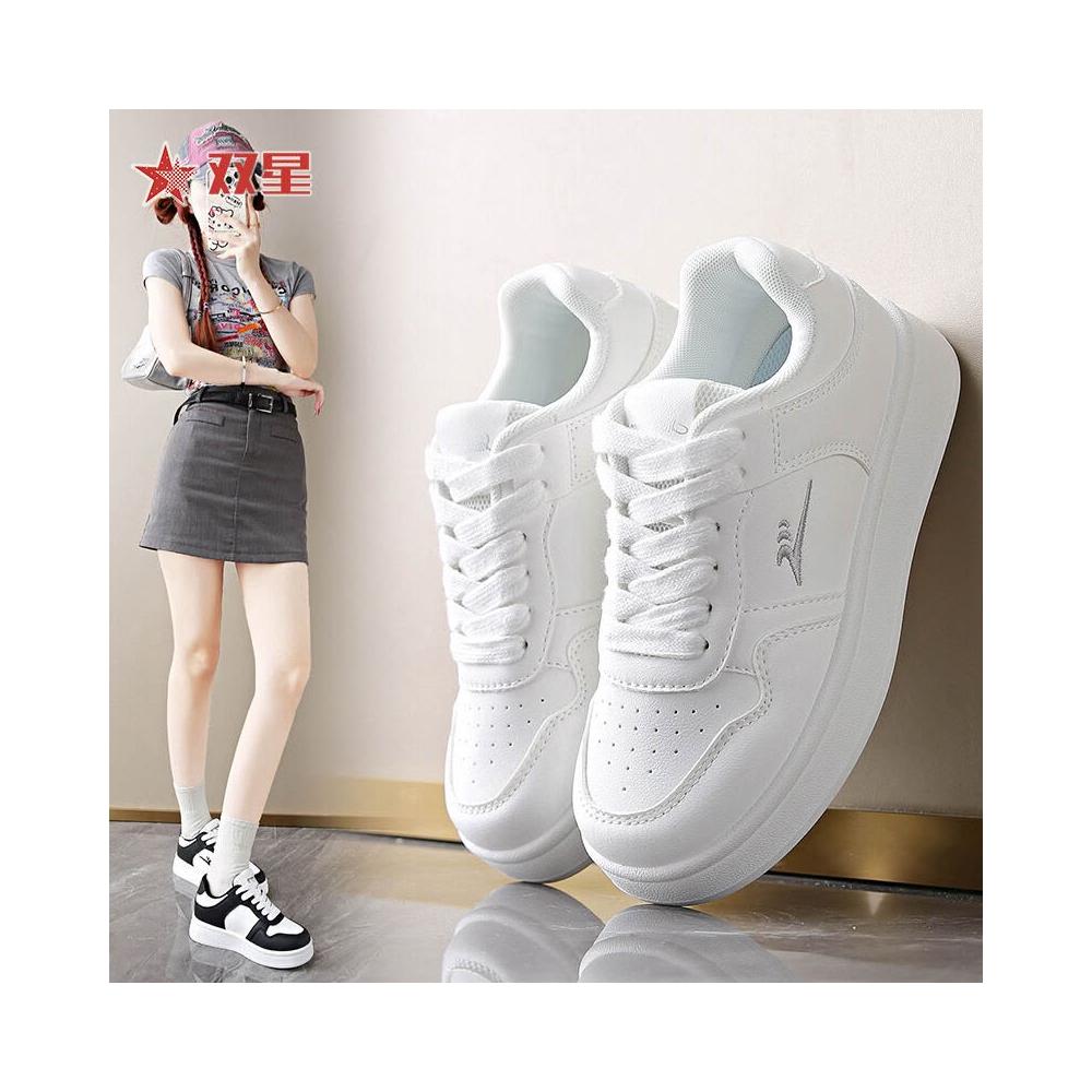 樂購小鋪 28016小白鞋女2025新款春秋板鞋休閑百搭學生透氣軟底輕便厚底 9