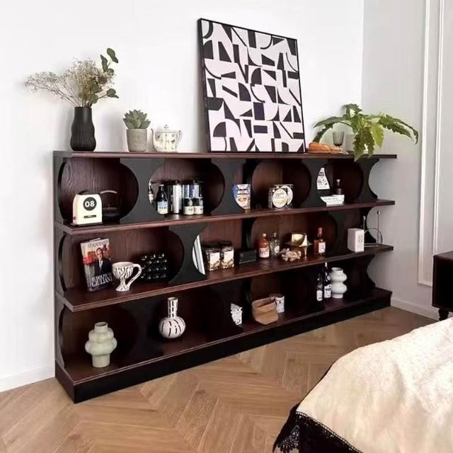 樂購小鋪 客廳中復古簡約收納法式書櫃客廳展示置物櫃高端書架一體多層書架 04
