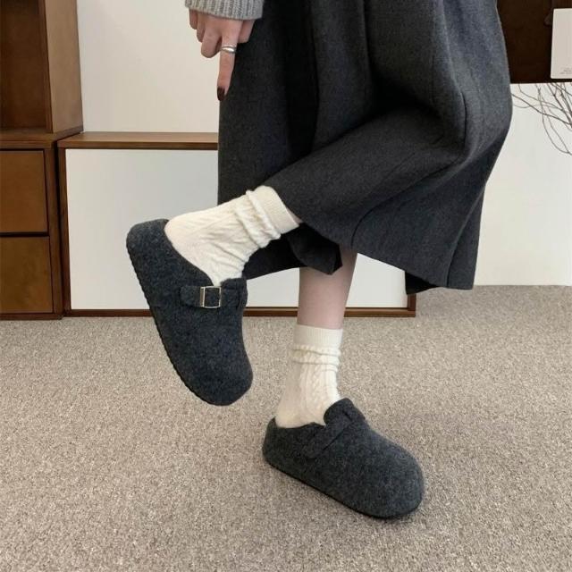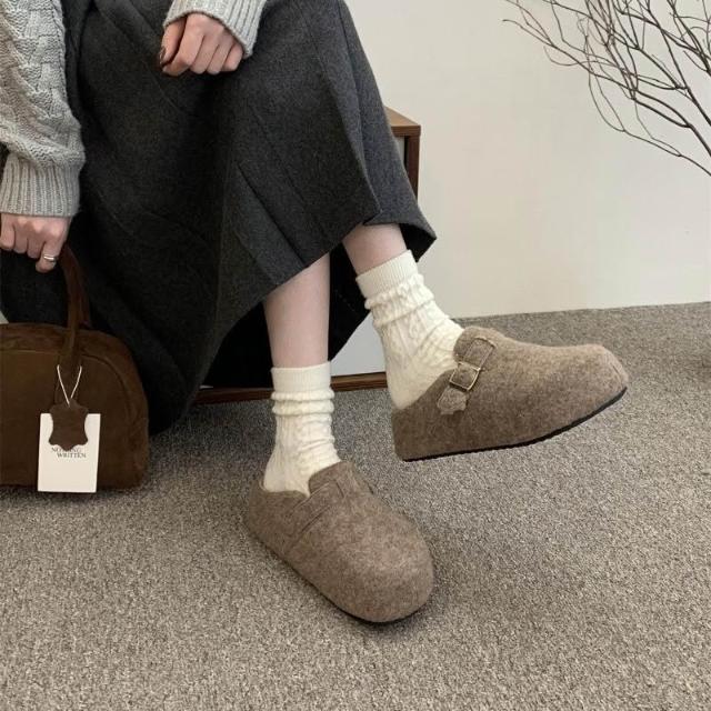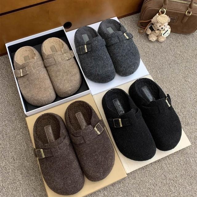 樂購小鋪 增高厚底勃肯包頭半拖鞋女新款法式松糕灰色毛毛拖鞋女外穿穆勒鞋 7