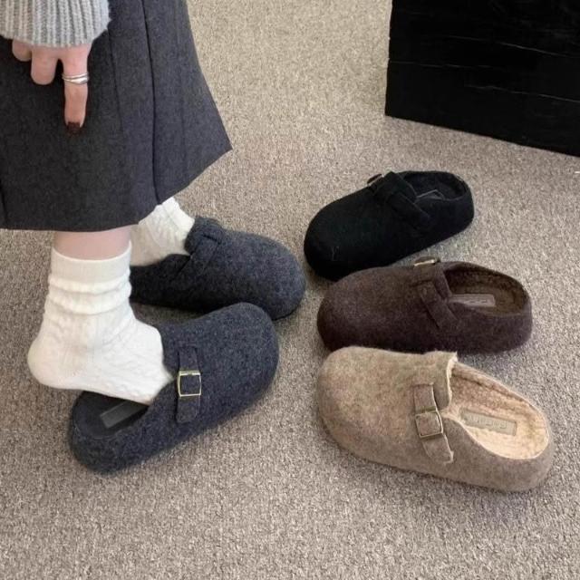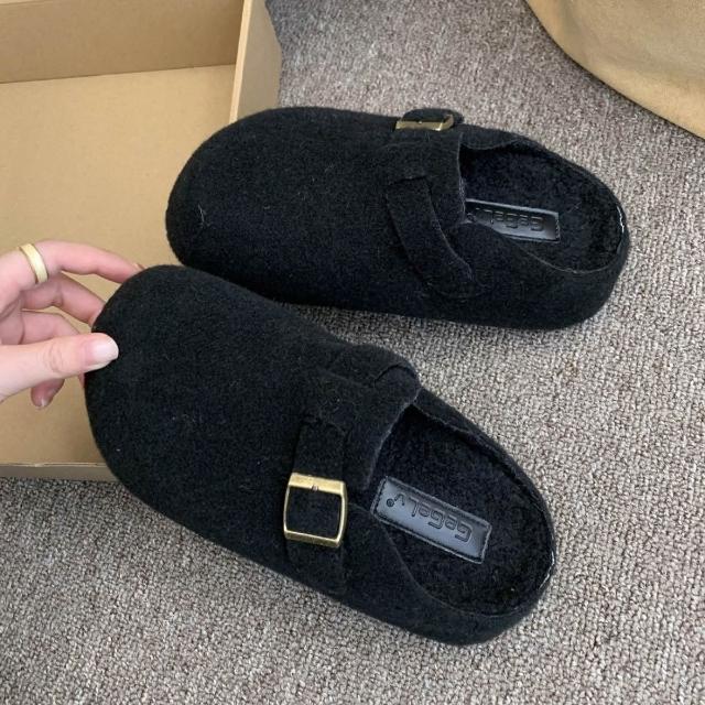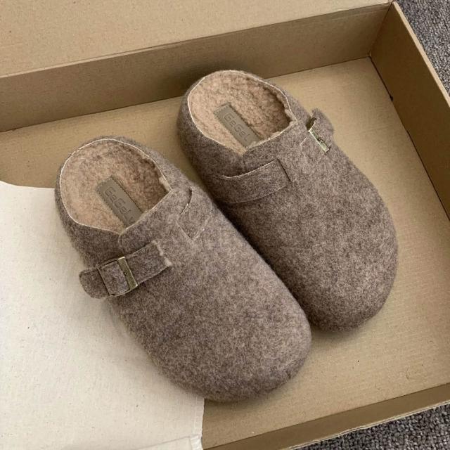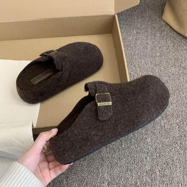 樂購小鋪 增高厚底勃肯包頭半拖鞋女新款法式松糕灰色毛毛拖鞋女外穿穆勒鞋 7