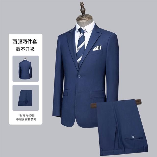 樂購小鋪 高檔西服套裝男士西裝修身全套男老師教師工作服藏青職業西裝 1