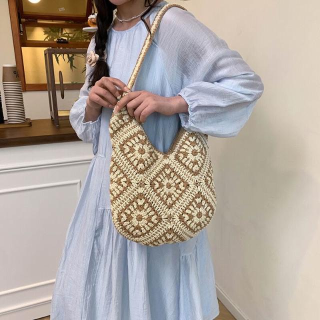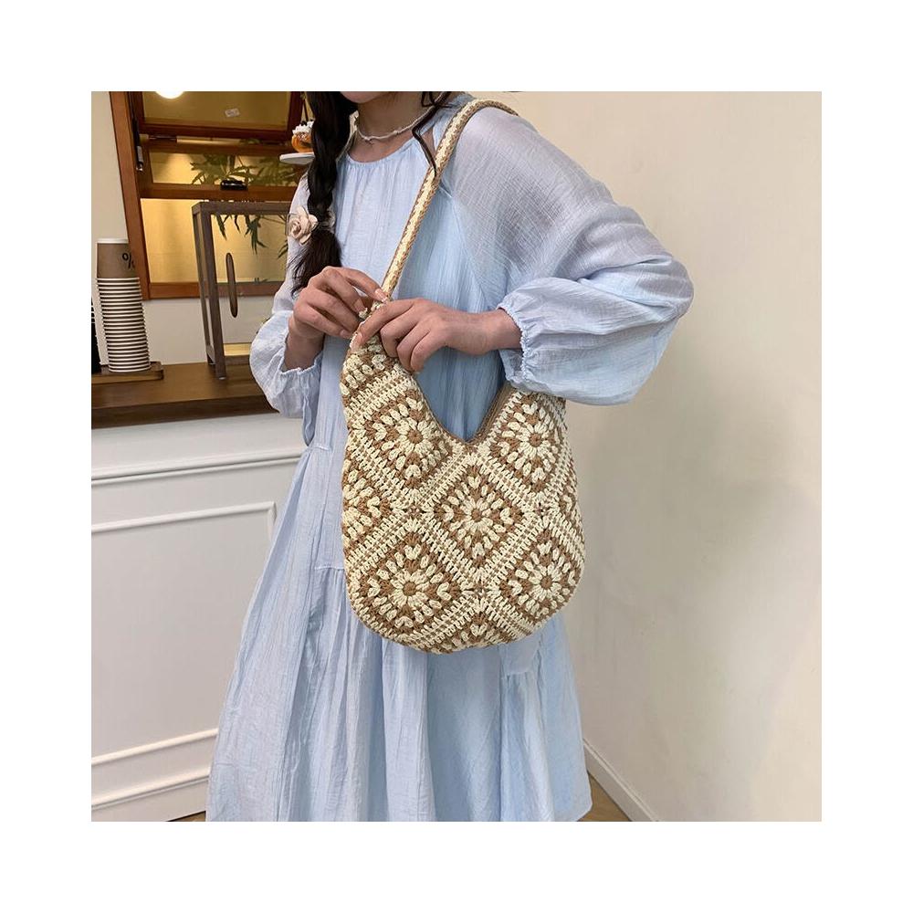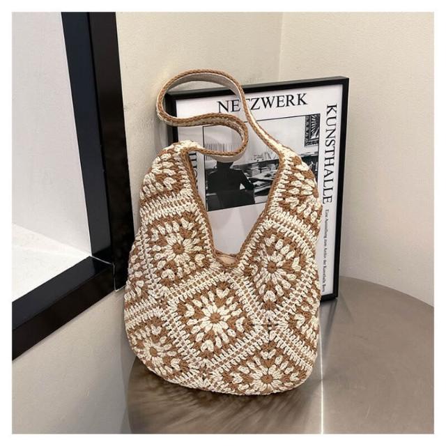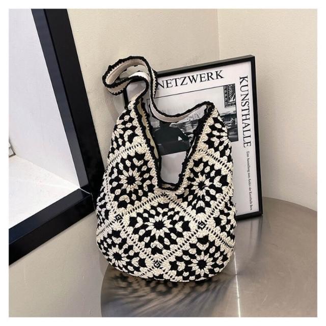 樂購小鋪 手工棉線鉤織镂空向日葵編織包民族風大容量托包編單肩斜挎包